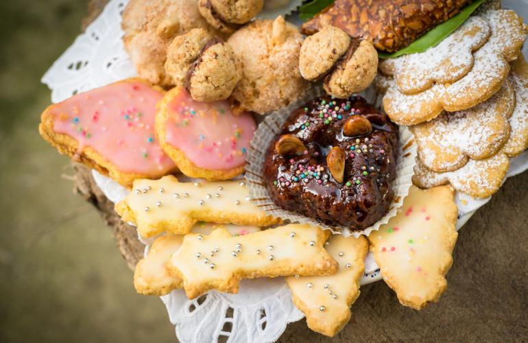 Oltre all'uvetta, che deve essere messa ad ammollare, la ricetta di questi biscotti prevede un trito di mandorle e noci che deve essere esattamente nella stessa quantità dell'uva passa. Per rendere poi il tutto profumatissimo, si usa la scorza di limone grattugiata, insomma is pabassinas sono un vero e proprio concentrato dei sapori dell'autunno sardo.