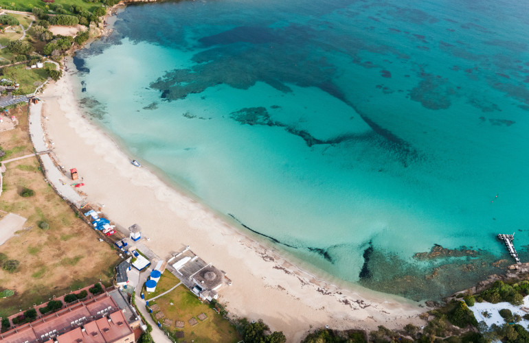 L’arenile si presenta nello stile classico delle spiagge della Sardegna: lungo, fatto di sabbia chiara e soffice, si apprezza anche prima di metterci i piedi. E’ così ampio che può "disperdere” i suoi visitatori anche nell’altissima stagione, che la frequentano in gran numero attratti come sono dall’acqua chiara cristallina e trasparente con belle sfumature del verde e con fondali che divengono profondi piuttosto velocemente. Non manca nemmeno l’attrezzatura sempre più completa di lettini ed altri servizi.